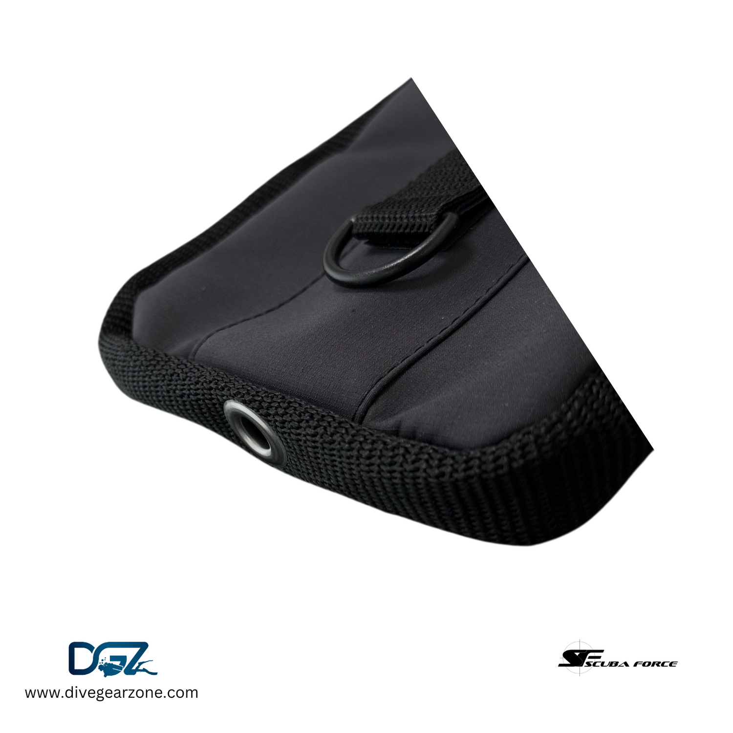 At Scuba Force, we have adopted a program to recycle the daily accumulation of waste products in our new GREEN LINE program and products. This ensures that Green Line products include at least 60% recycled materials in the manufacturing processes. The first in the Scuba Force Green Line series; a pocket which threads onto webbing made from TYGATEX, recycled material from our drysuit manufacturing.