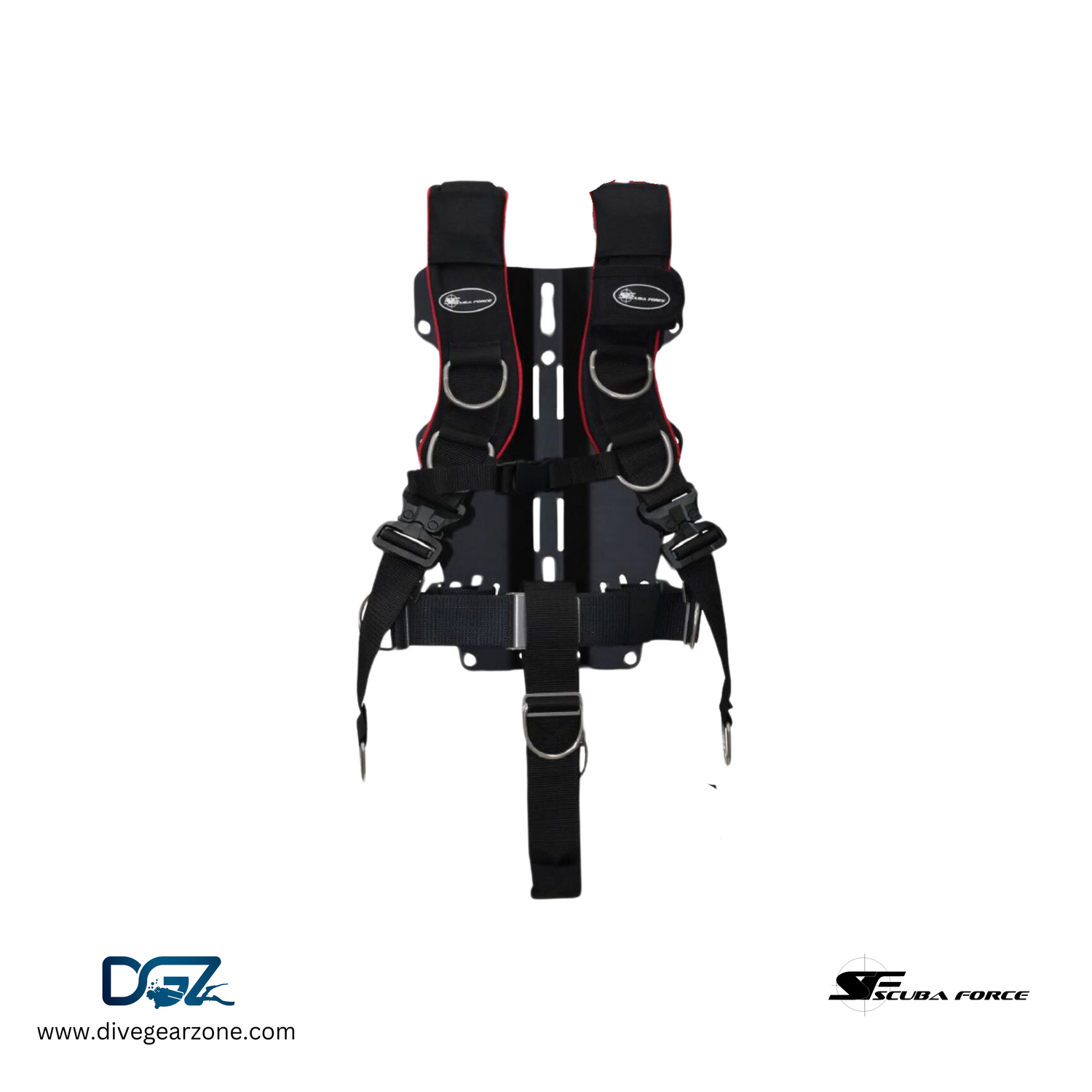 The Scubaforce CTX 32 BCD set is a fully equipped wing system tailored for sport diving. It features the Black Devil Wing 32, Black Devil Backplate, and a CTX Harness, offering divers a robust and dependable buoyancy system. With a lift capacity of 32 pounds, the wing is ideal for single tank diving. The backplate is crafted from durable materials, ensuring longevity, while the CTX Harness provides a comfortable, secure fit.