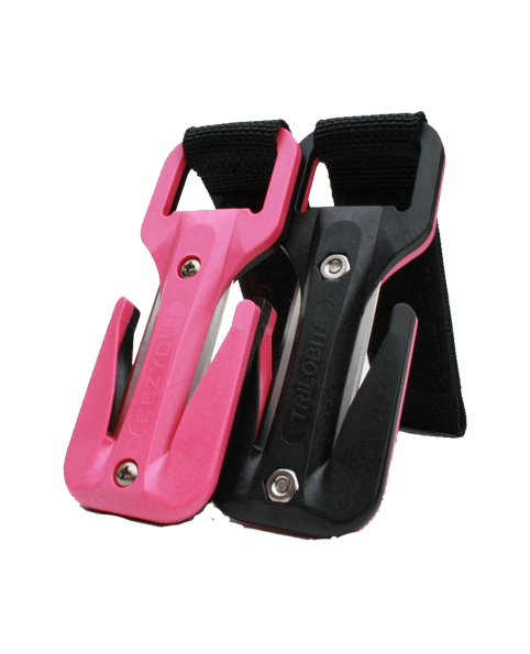 The EEZYCUT Trilobite has a very sharp cutting mechanism that provides a quick and efficient cut. Now offering more color options, the ergonomic design exposes a longer section of the cutting edge and enables the frame to push the line onto the blade. This design makes the cut more stable, which in turn provides a quicker cleaner cut and retains the blade's integrity by distributing the cut across its entire length. The Trilobite's small size makes it ideal for use as a diving cutting tool. The double-sided design means that it can be used efficiently in a variety of situations. The high strength polycarbonate plastic frame protects the blade's edge. The Trilobite is able to cut line up to 8mm in width and can easily cut { 2 in | 5.1 cm } webbing.