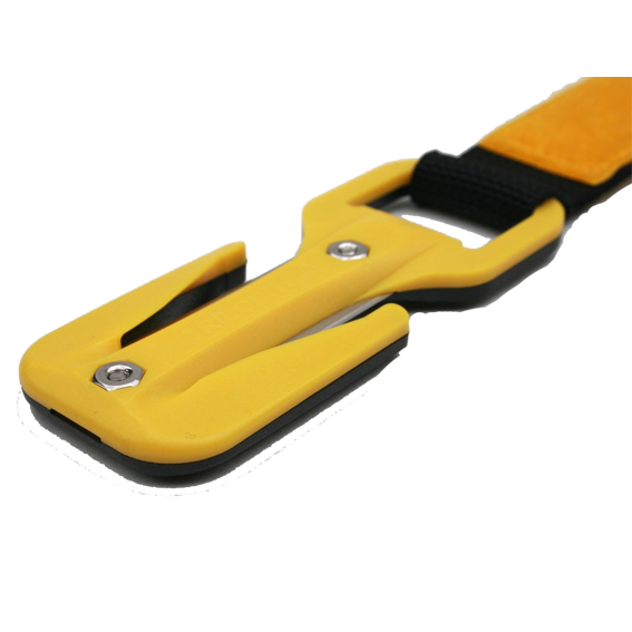 The small, convenient size { 3.66 in x 1.42 in x 0.32 in | 9.3 cm x 3.6 cm x 0.8 cm } make it ideal to use as part of a divers options for redundancy. Divers should carry backups of all life support equipment, including the cutting tool, and the EEZYCUT Trilobite can fit easily into that inventory. It fits anywhere, In the pocket, on the harness, or even on the wrist for effortless access.