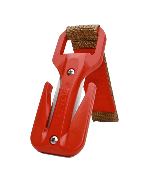 The high strength polycarbonate plastic of the EEZYCUT Trilobite is rated to cut line up to 8 mm thick, with ease, every time. The EEZYCUT Trilobite also cuts all types of webbing with ease.