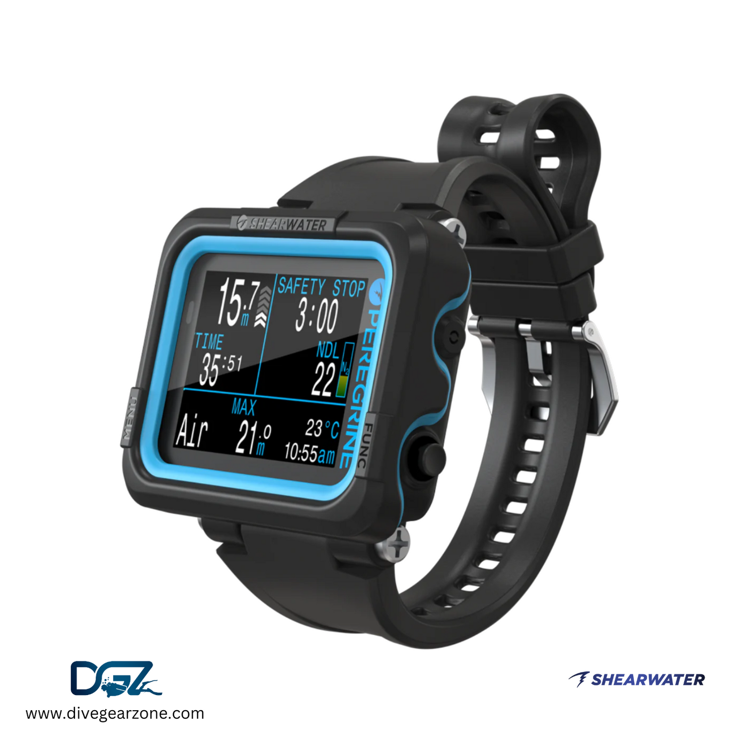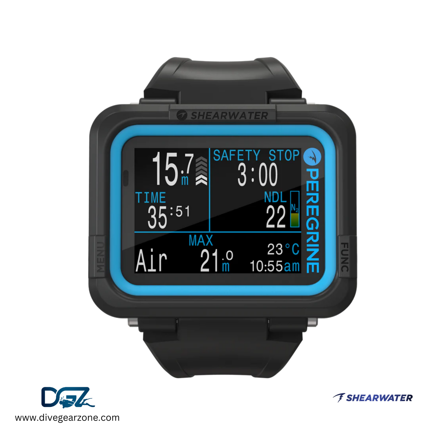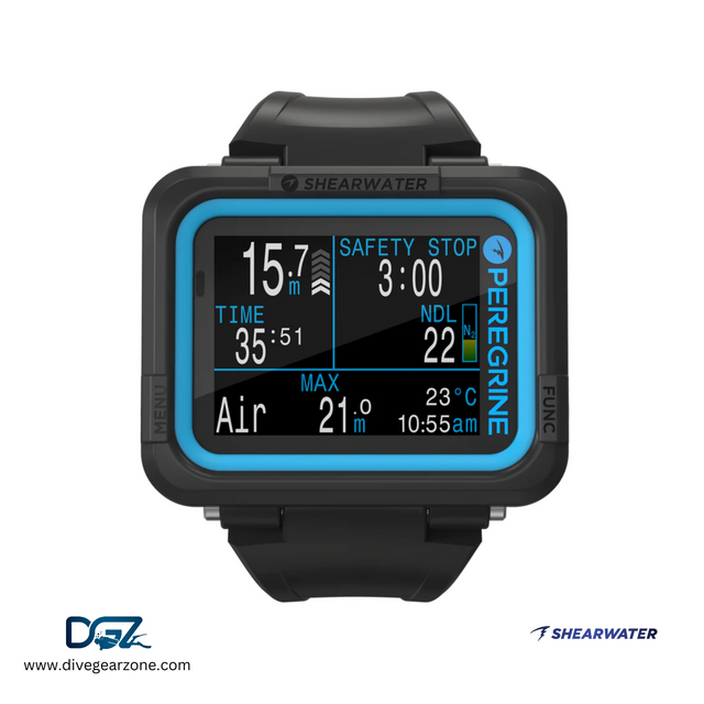 The Peregrine by Shearwater Research, Canada, is an advanced Nitrox dive computer designed with user-friendly menus for a seamless diving experience. Featuring a large 2.2-inch (5.6 cm) COLOR display, the Peregrine ensures easy readability even in challenging conditions.