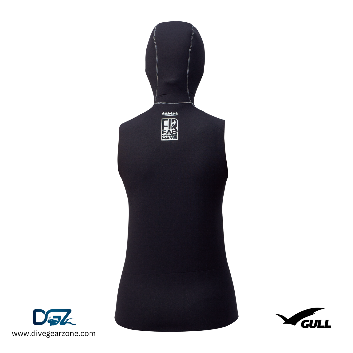 This FIR (Far Infrared Radiation) fabric-lined hood vest keeps your head and torso warm in colder waters.