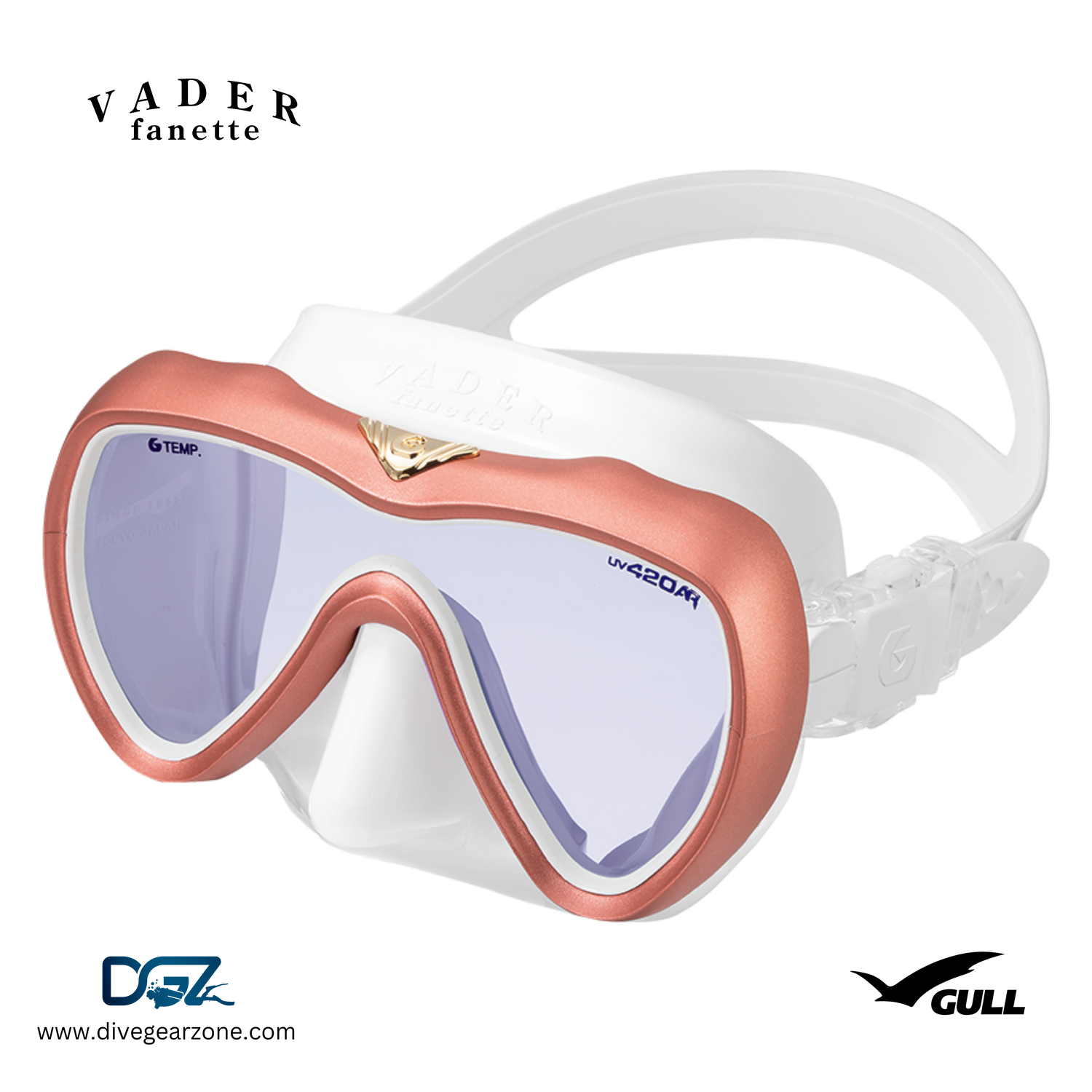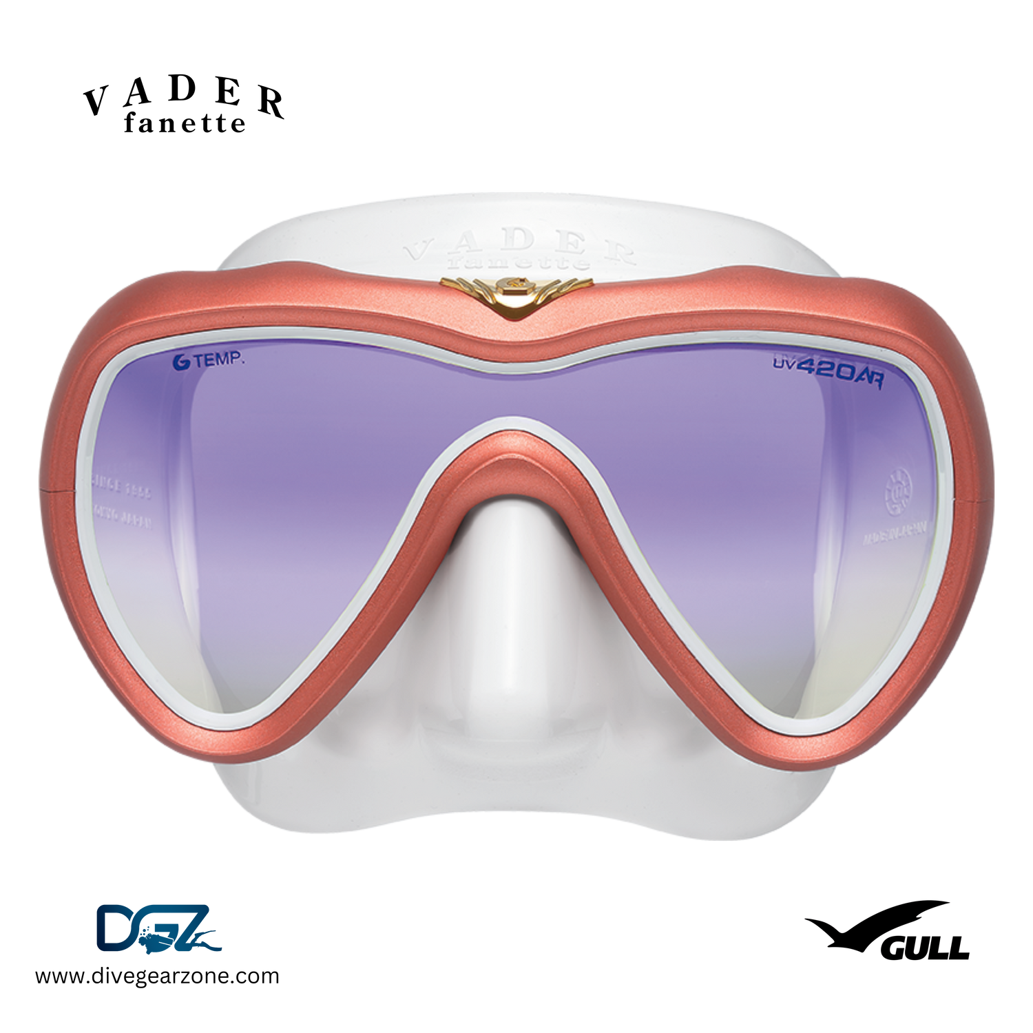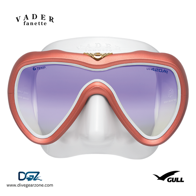 VADER fanette features a single, UV420 lens form with a smaller beautifully contoured body. Its specially tailored silicone skirt extends beyond the cheekbones for a more effective seal. VADER fanette is the perfect option for divers looking for a chic, yet high-performance mask.