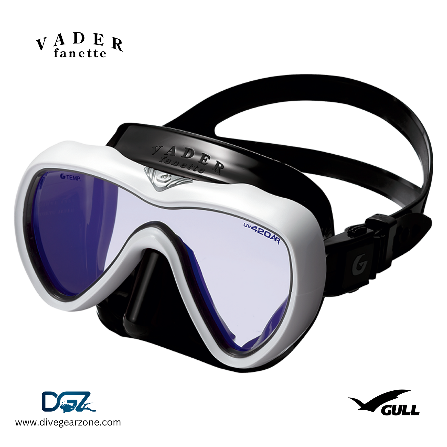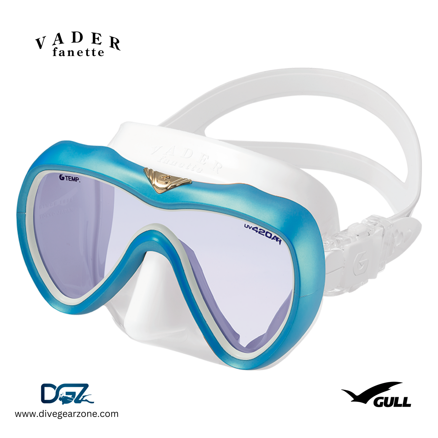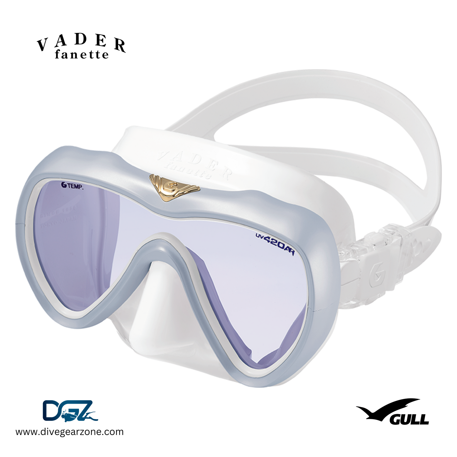 VADER fanette features a single, UV420 lens form with a smaller beautifully contoured body. Its specially tailored silicone skirt extends beyond the cheekbones for a more effective seal. VADER fanette is the perfect option for divers looking for a chic, yet high-performance mask.