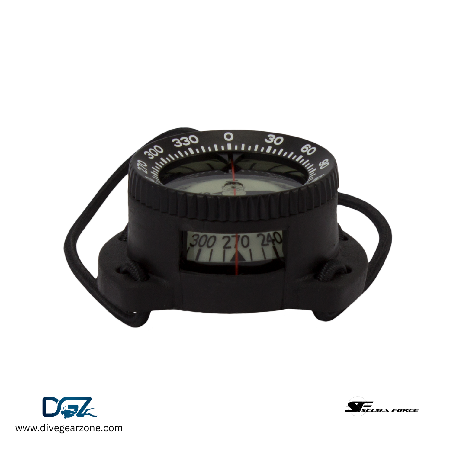 The SCUBA FORCE Compass Pro is a high quality liquid-filled Diving Pro Compass with bungee mounts.