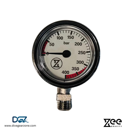 This precision mechanism is engineered to accurately measure and display the remaining air pressure in a scuba tank. It is specifically chosen for its reliability, high accuracy, and ability to maintain calibration even after shocks or impacts—making it ideal for demanding diving environments.