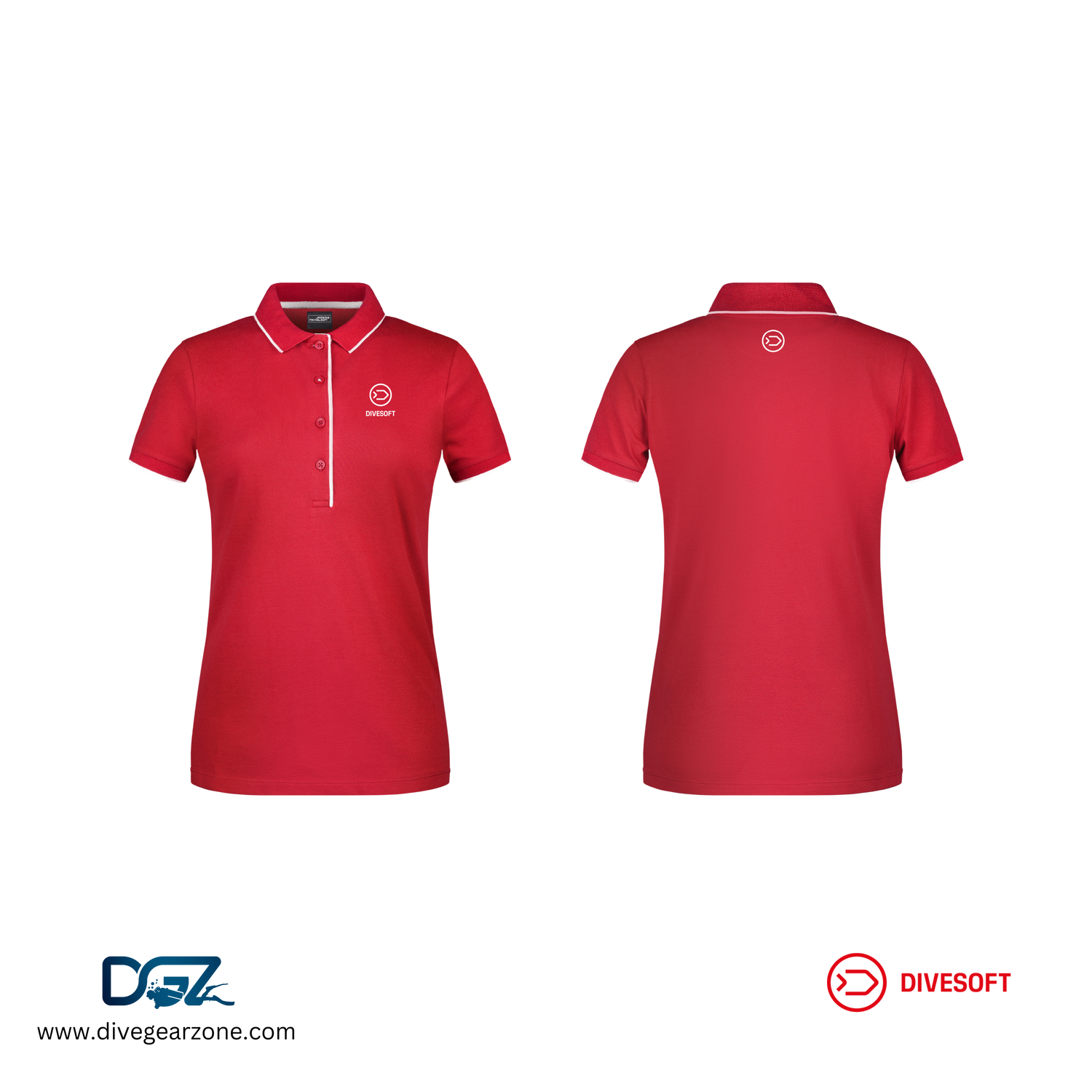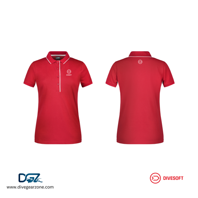 Divesoft Ladies Polo Shirt - Red / L is backordered and will ship as soon as it is back in stock.