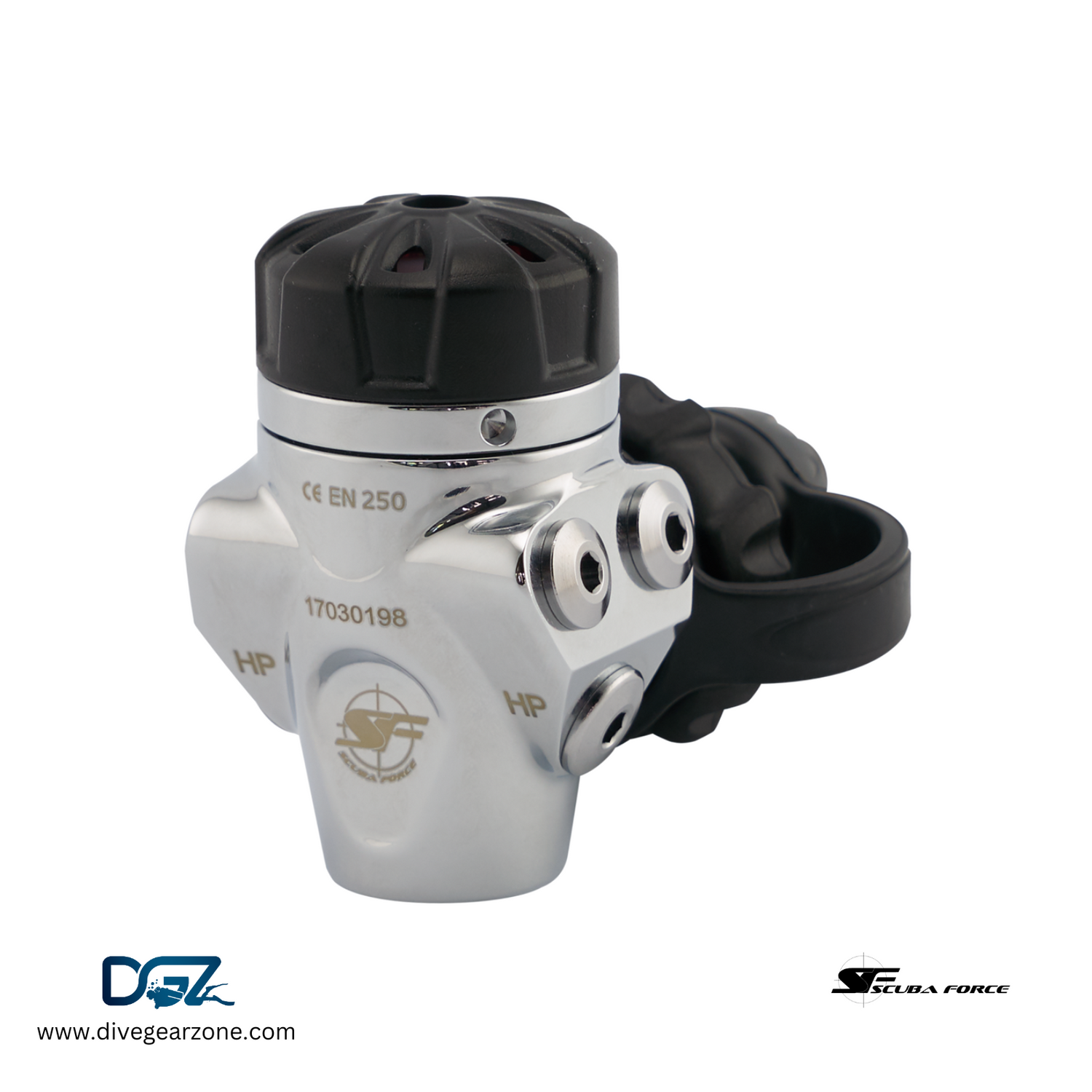 All SCUBA FORCE's Black Devil Regulators 1st Stage are overcompensated diaphragm regulators. They have a perfect breathing comfort - even at greater depths. Outstanding and reliable performance for the demanding needs of technical and cold water dives.