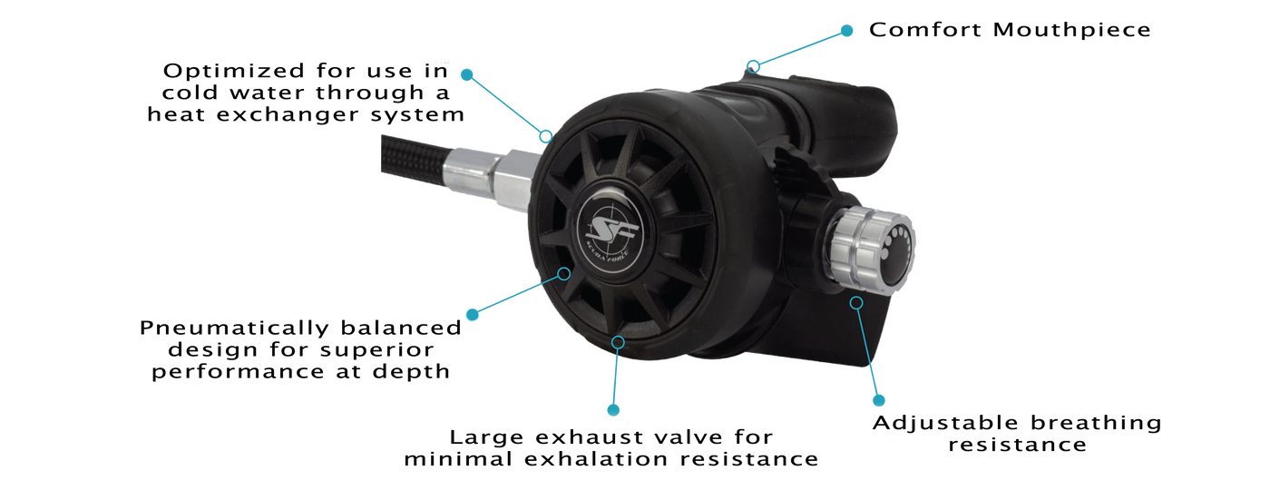 ScubaForce regulators deliver outstanding breathing performance and reliability, even in cold water conditions, while offering flexible configuration options for various diving needs.